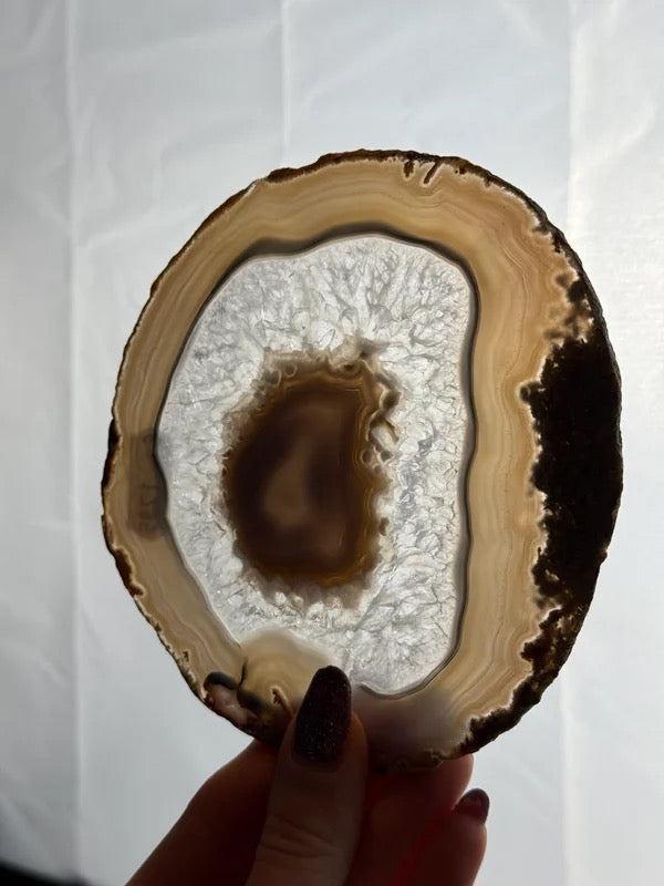 Alle agaat schijven worden gefotograveerd op een plexi houder maat S (deze kun je los bestellen!)