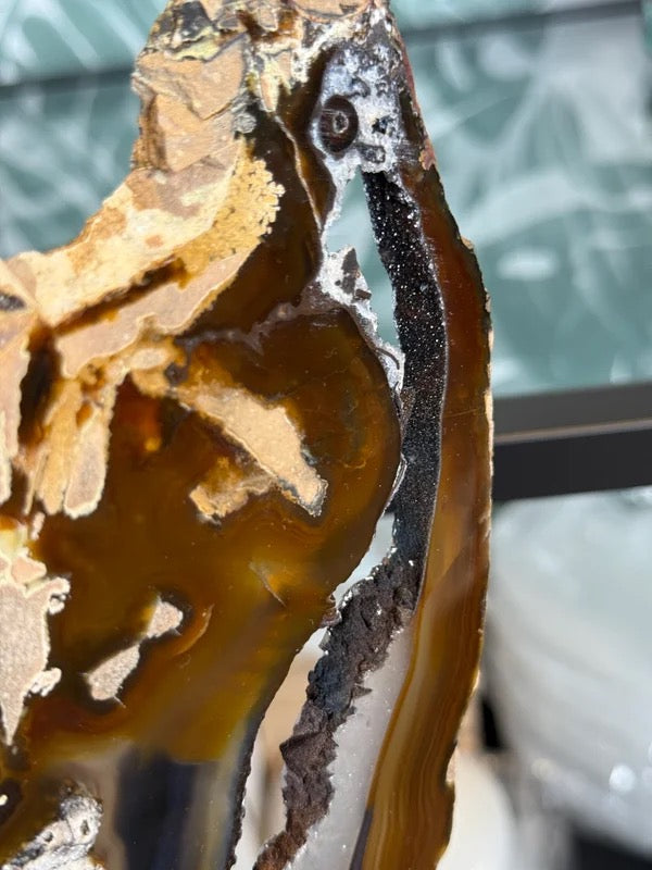 Alle agaat schijven worden gefotograveerd op een plexi houder maat S (deze kun je los bestellen!)