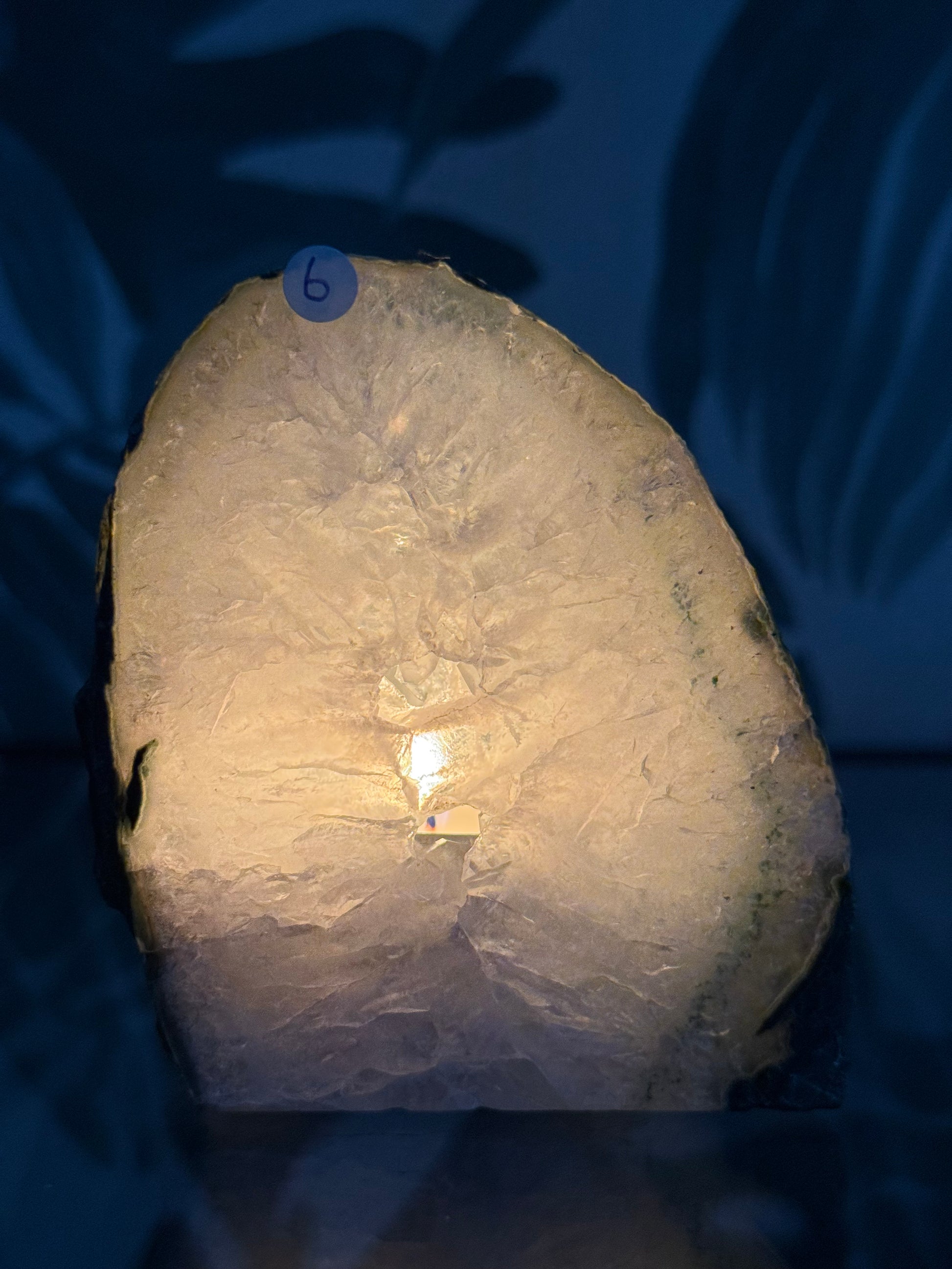 Elke houder is uniek in vorm, tekening en kleur – een waar kunstwerk van de natuur. Wanneer het waxinelichtje brandt, lichten de kristallagen subtiel op en ontstaat er een warme, rustgevende gloed.