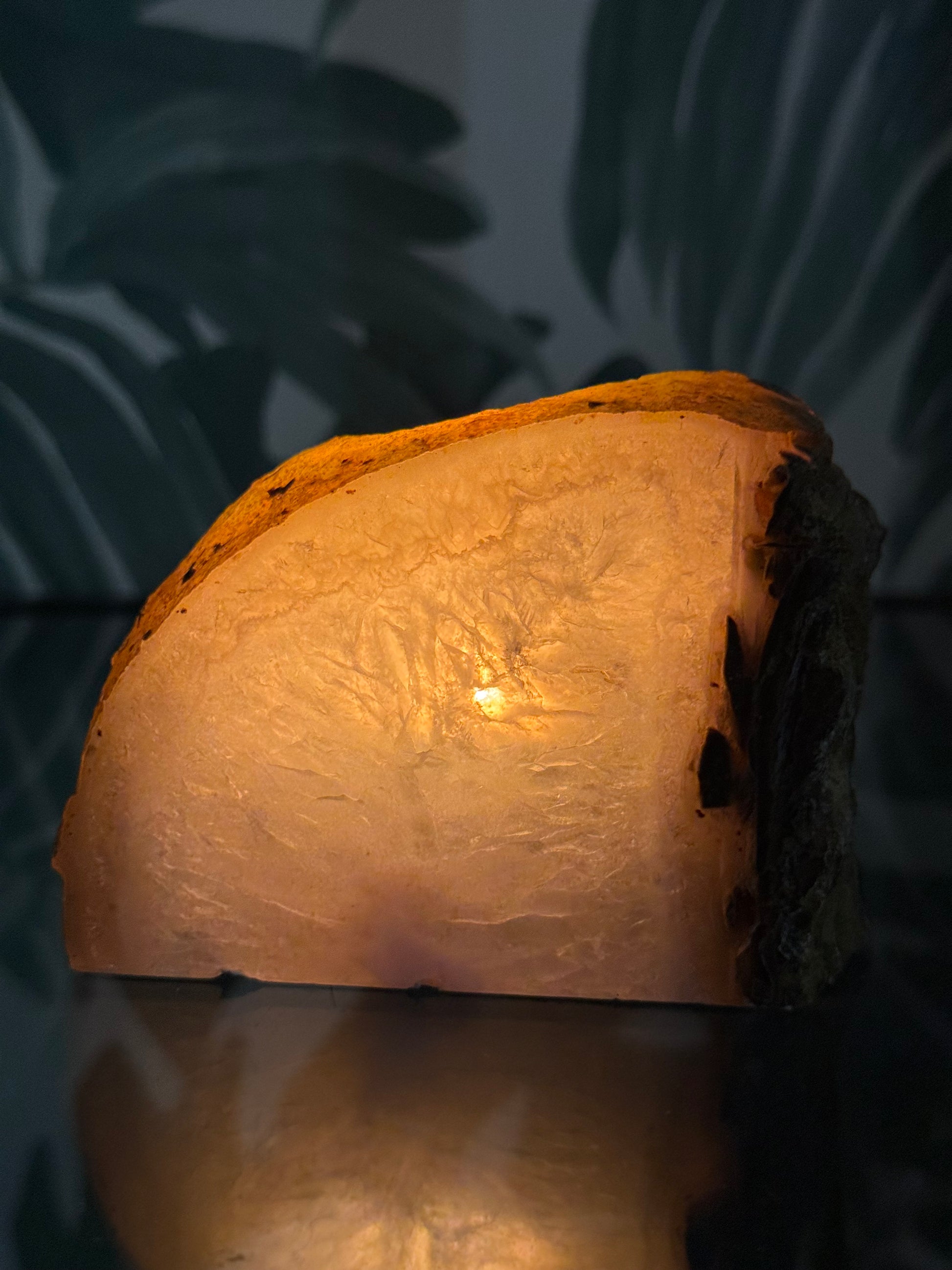 Elke houder is uniek in vorm, tekening en kleur – een waar kunstwerk van de natuur. Wanneer het waxinelichtje brandt, lichten de kristallagen subtiel op en ontstaat er een warme, rustgevende gloed.