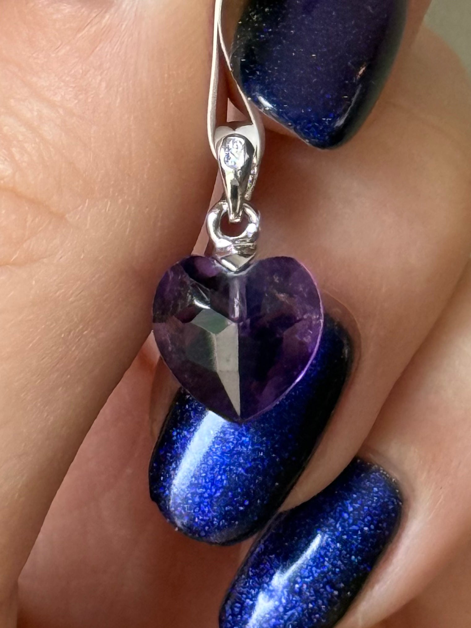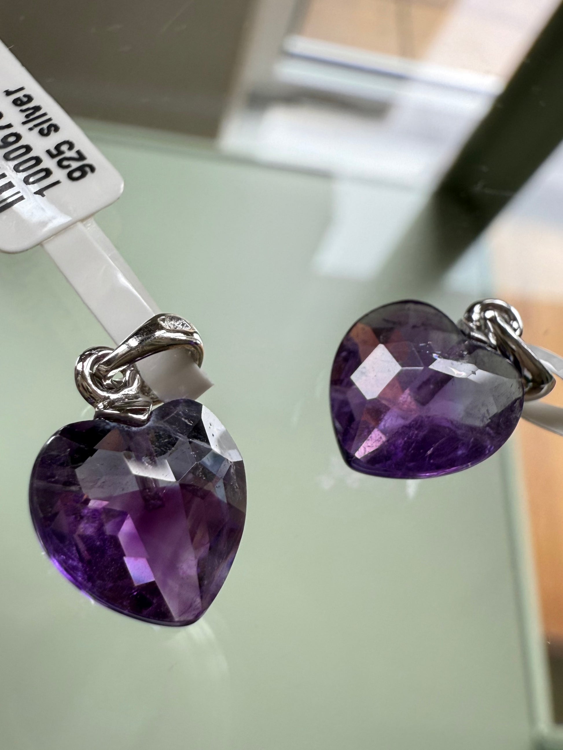 Amethist Hanger Hart â Facet Geslepen 10 mm â 925 Zilver