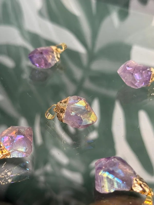 Amethist punt aura coated hanger goud (rust & helderheid)