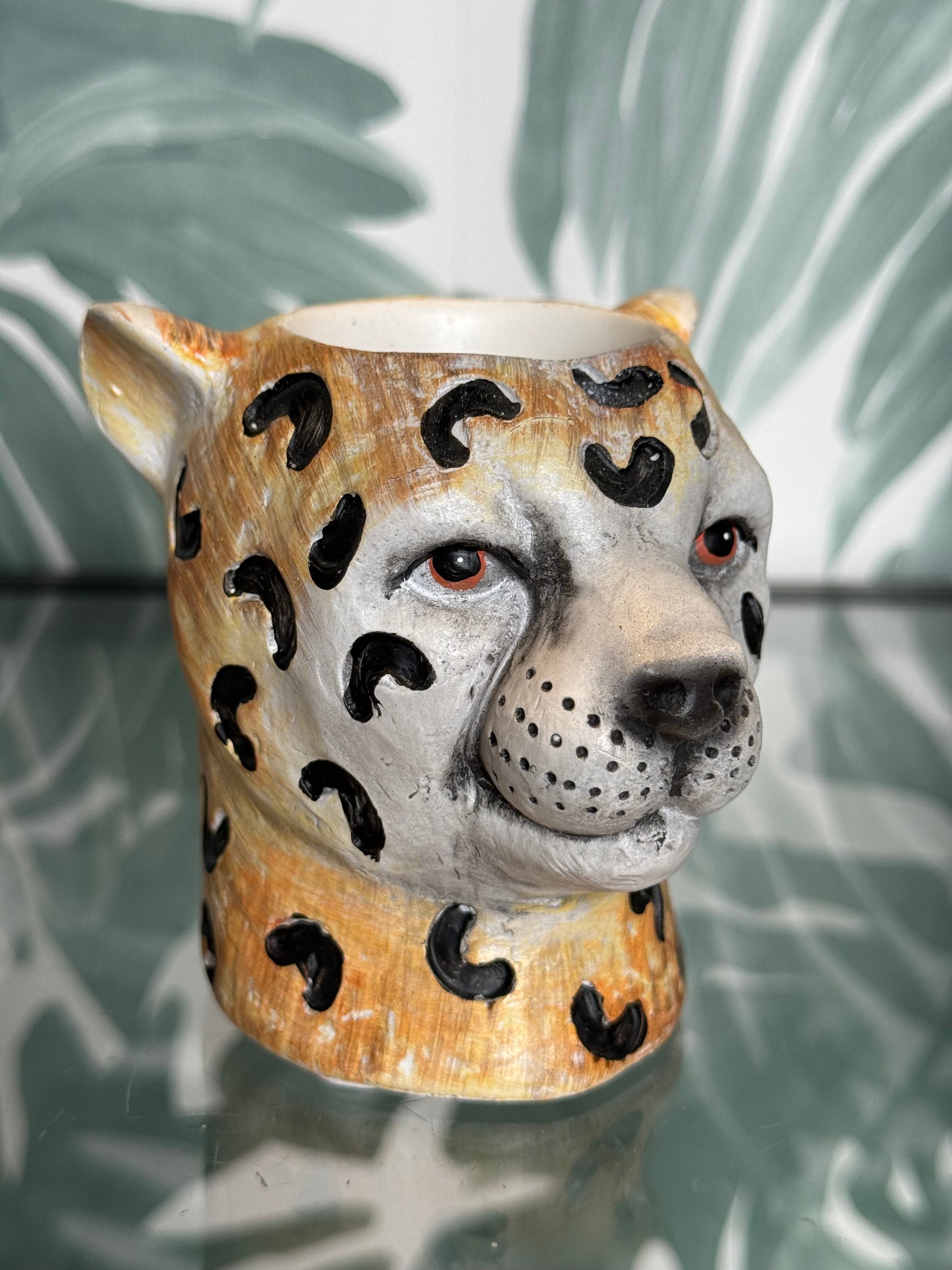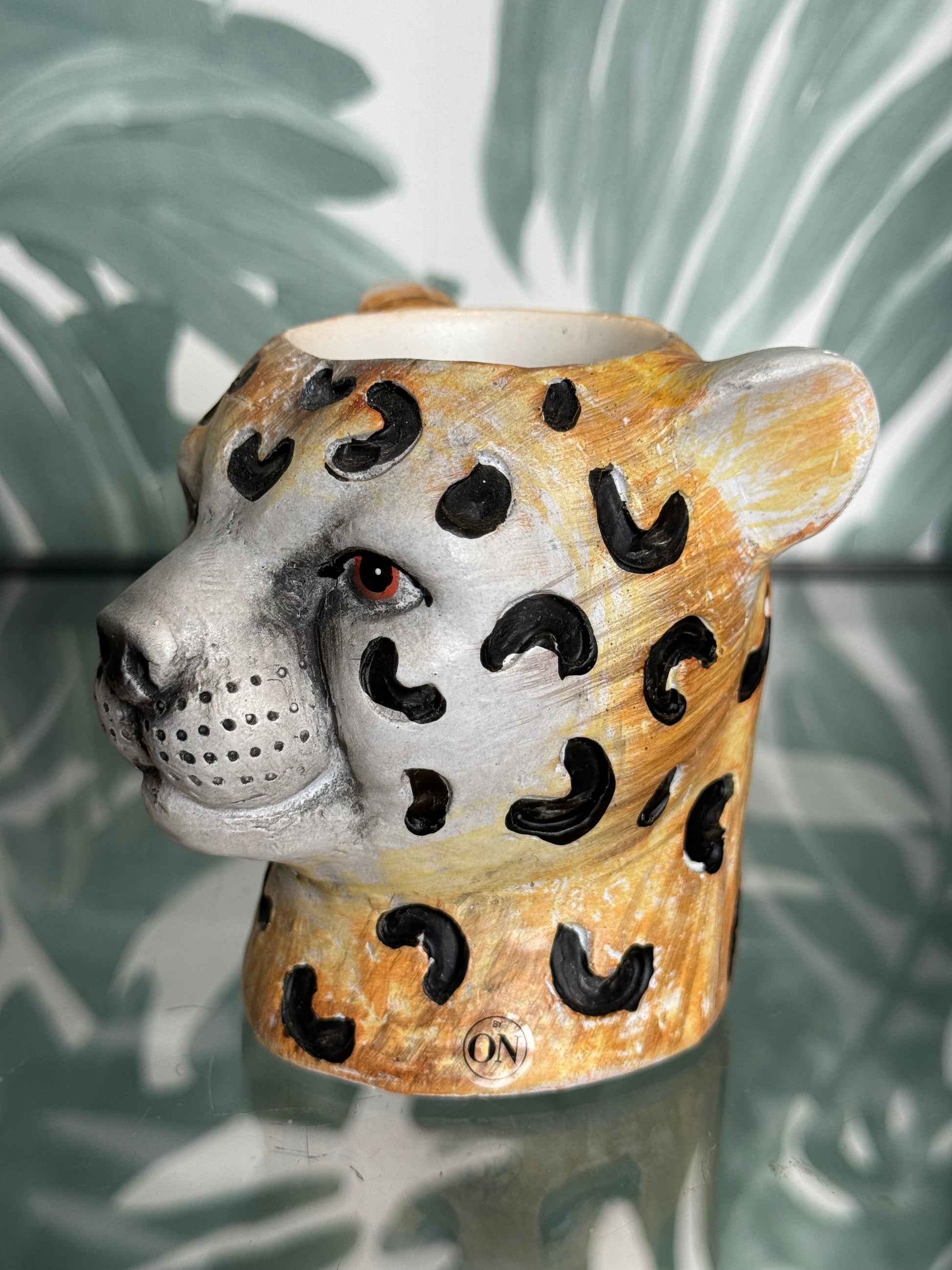 Uniek keramieken vaasje van BY ON in de vorm van een luipaardkop. Mooi voor kleine droogbloemen, veertjes of als decoratief bakje voor sieraden of edelstenen. Een stoere eyecatcher voor in huis.