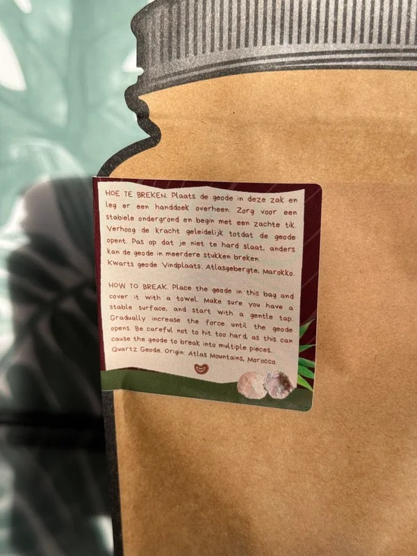 Plaats de geode in deze zak en leg er een handdoek overheen.