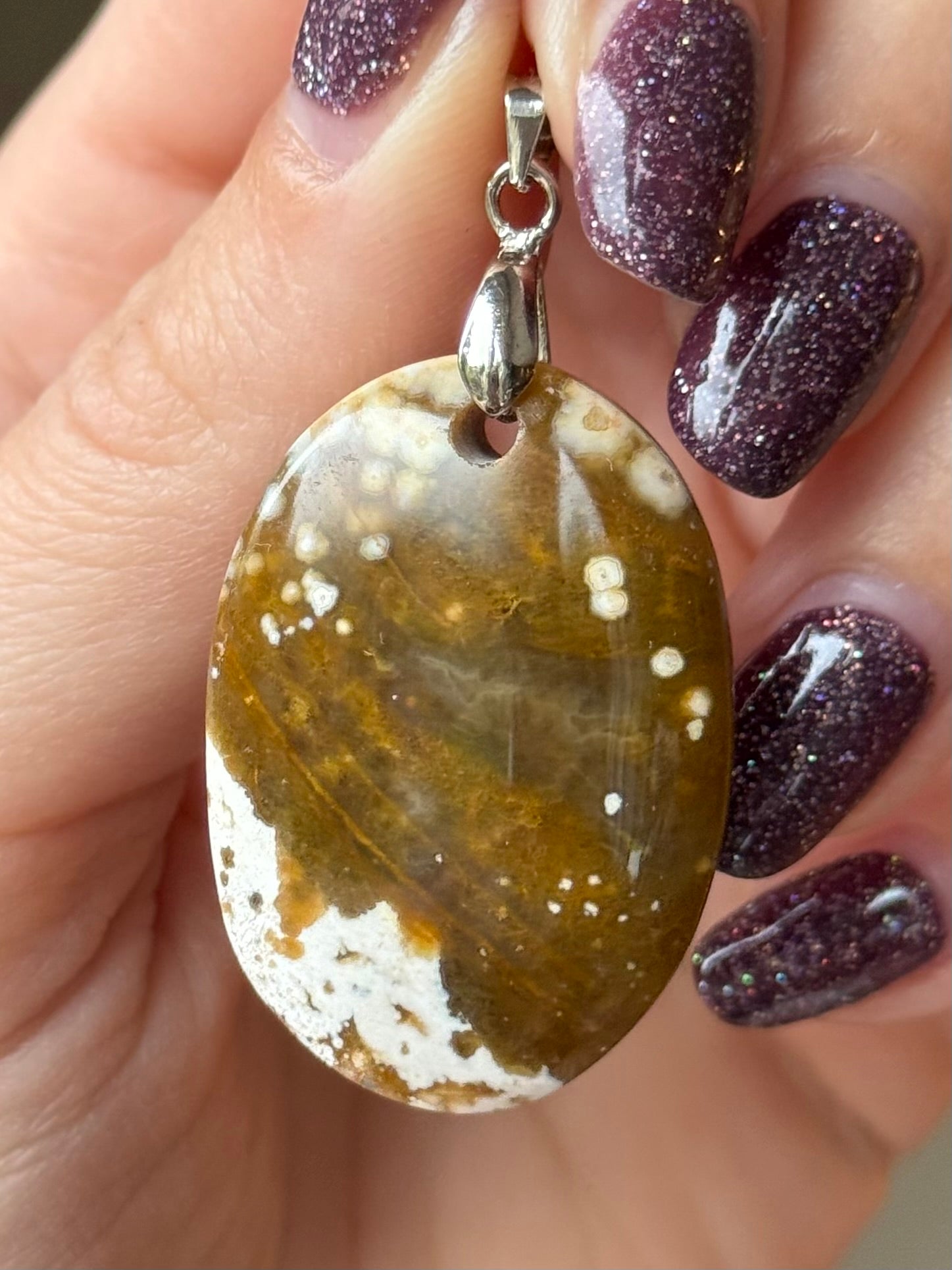 Oceaan jaspis kettinghanger #no.1 (rust & vrolijkheid)
