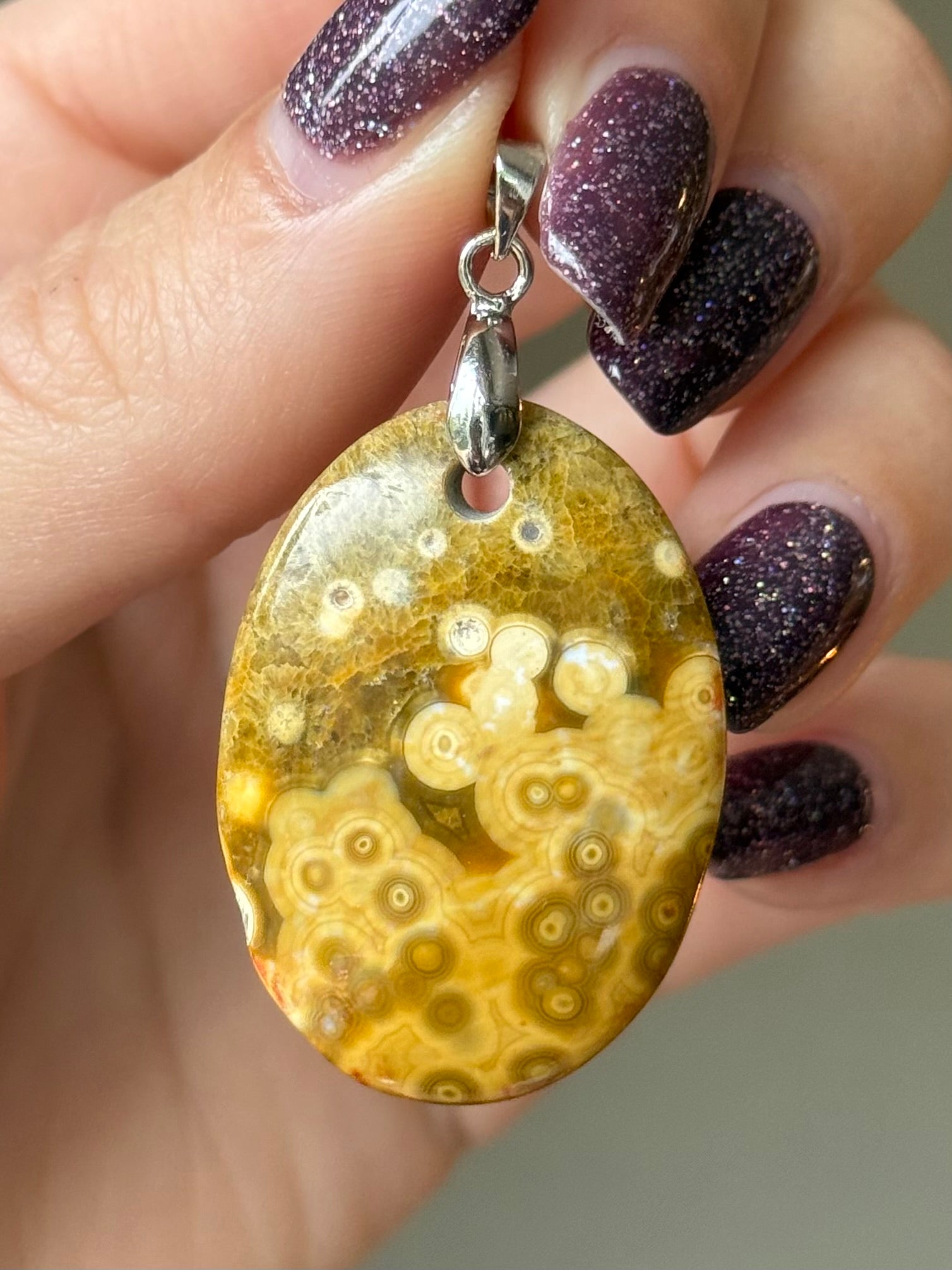 Oceaan jaspis kettinghanger #no.8 (rust & vrolijkheid)