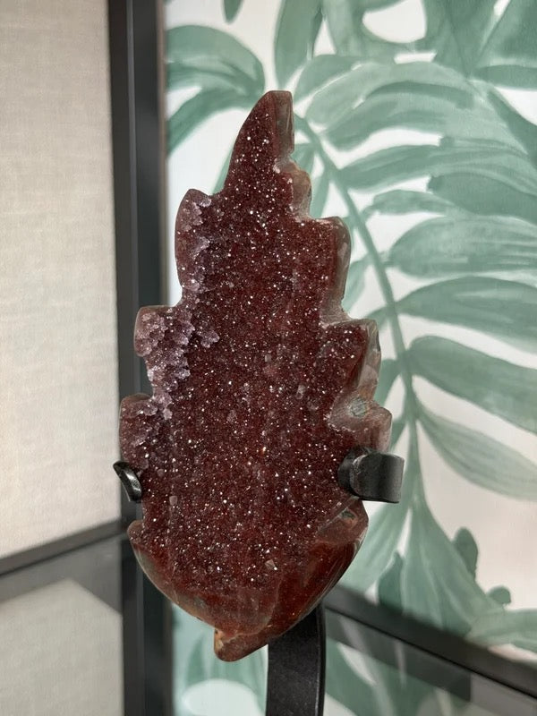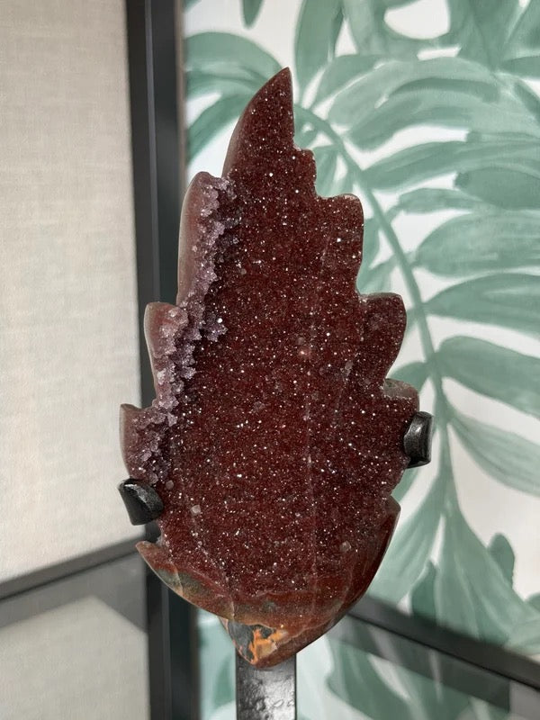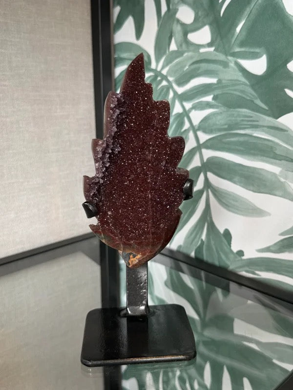 Rood amethist blad op luxe houder #no.308