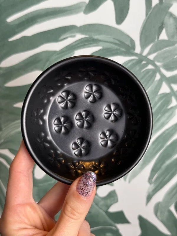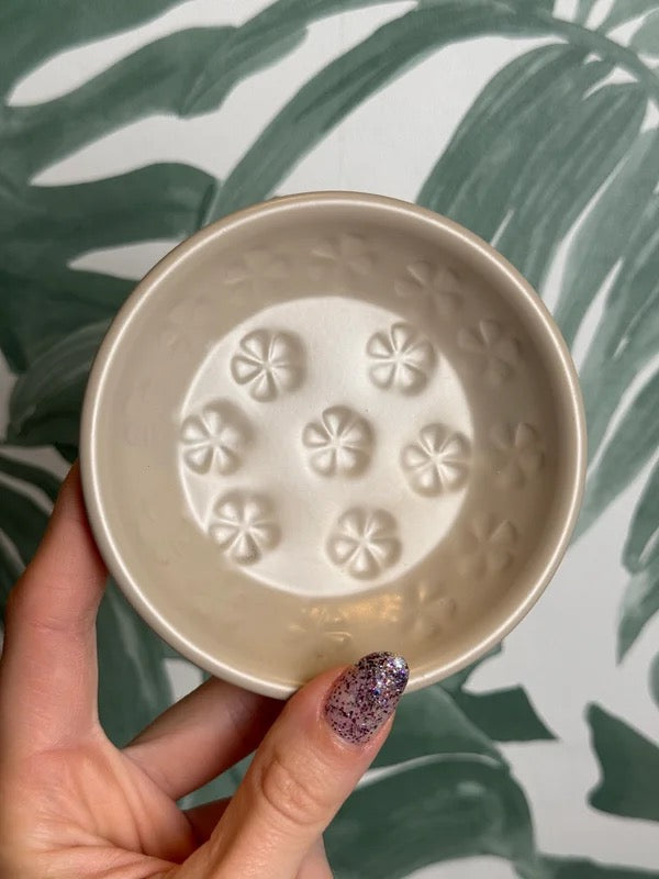 Breng subtiele elegantie in huis met dit prachtige metalen schaaltje met bloemenpatroon. Perfect om amberblokjes, amberroosjes, sieraden of edelstenen op te presenteren. De bloemvormige uitsparingen zorgen voor een speels, luchtig effect dat prachtig combineert met natuurlijke materialen en zachte tinten.