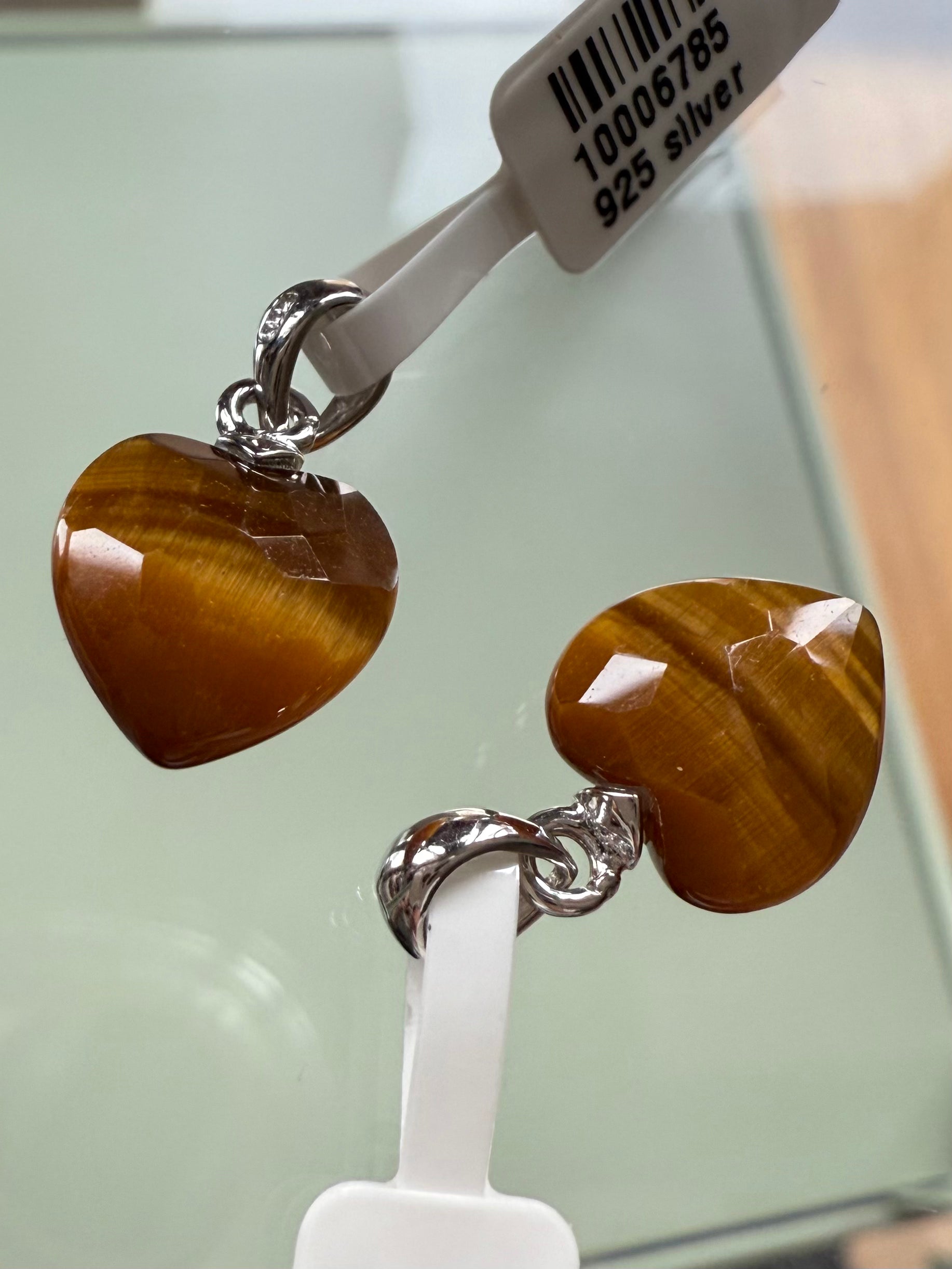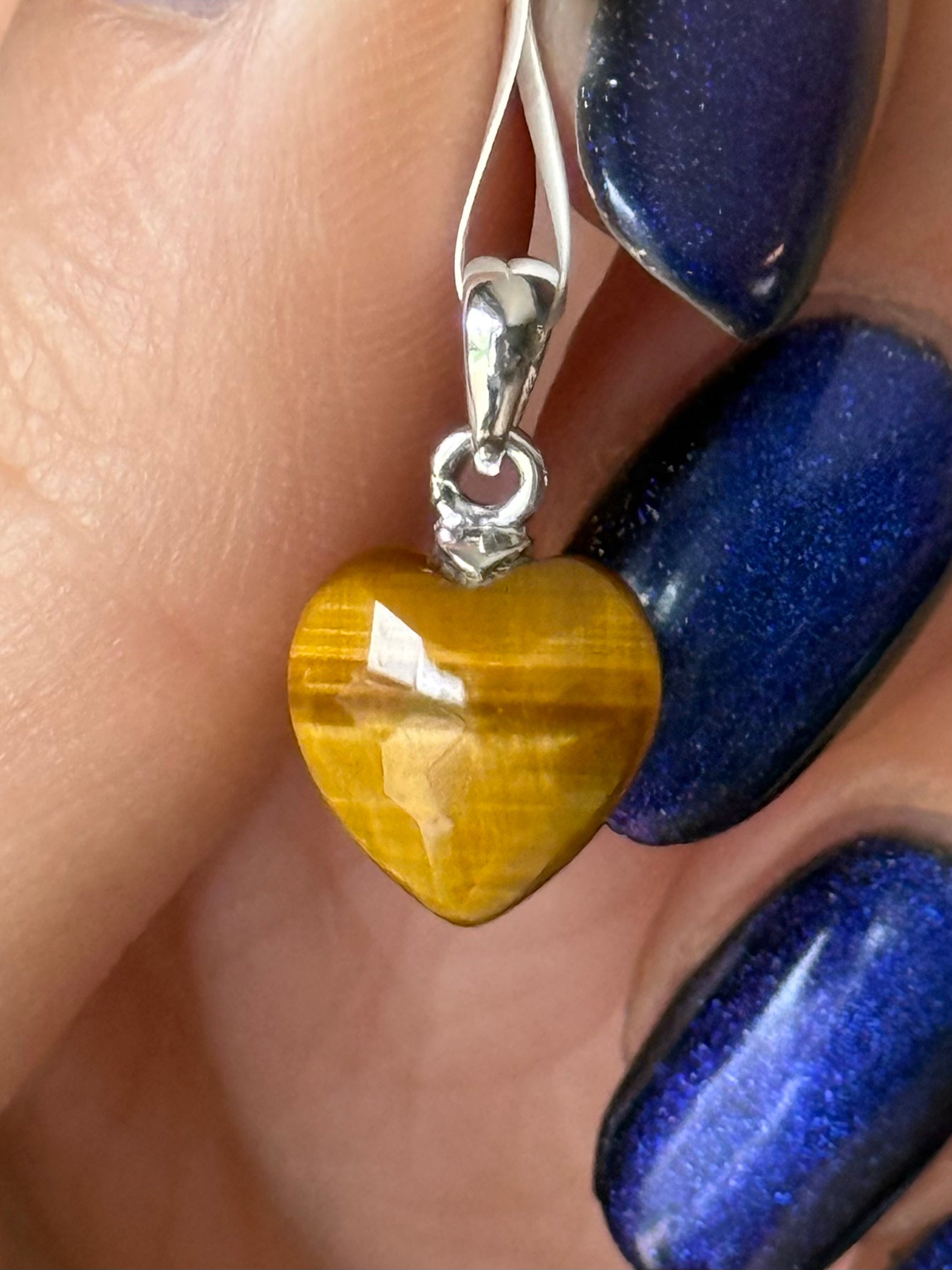 Tijgeroog Hanger Hart – Facet Geslepen 10 mm – 925 Zilver